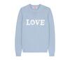 Crew neck "love" sweater, soft and thermal yarn with set-in armholess, front graphic and rib structure details at neck, cuff and waistband.